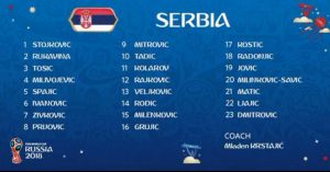 Te presentamos las listas oficiales de las selecciones del Grupo E del Mundial de Rusia 2018, conformado por por Brasil, Suiza, Costa Rica y Serbia.