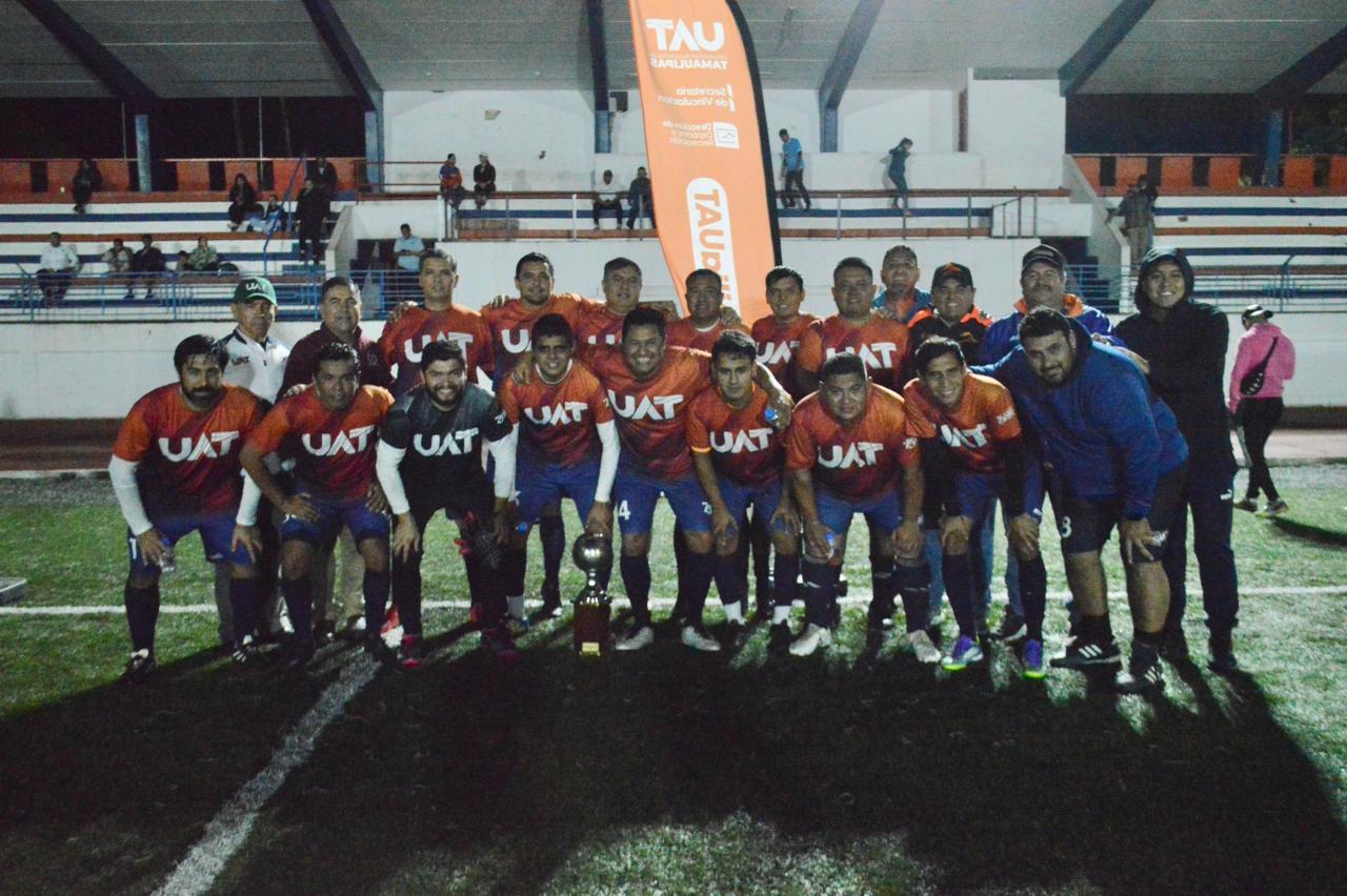 Victoria, Tamaulipas.- El conjunto de la Secretaría de Vinculación se proclamó bicampeón del Torneo de Futbol 11 para Funcionarios, Maestros y Empleados del Centro Universitario Victoria, de la Universidad Autónoma de Tamaulipas después de imponerse tres goles por cero a la Dirección de Recursos Humanos.